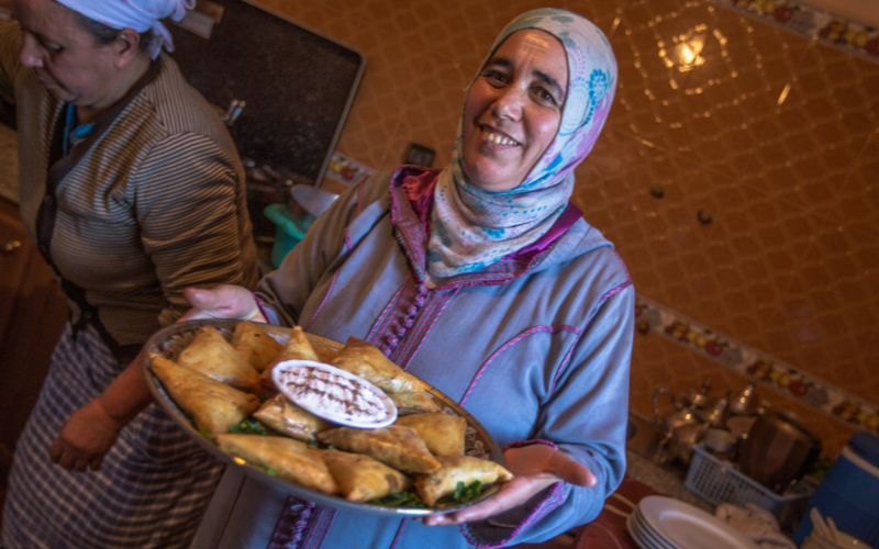 Travellers visit the rural village of M'Haya to enjoy a delicious lunch prepared by a group of five women from the association.
