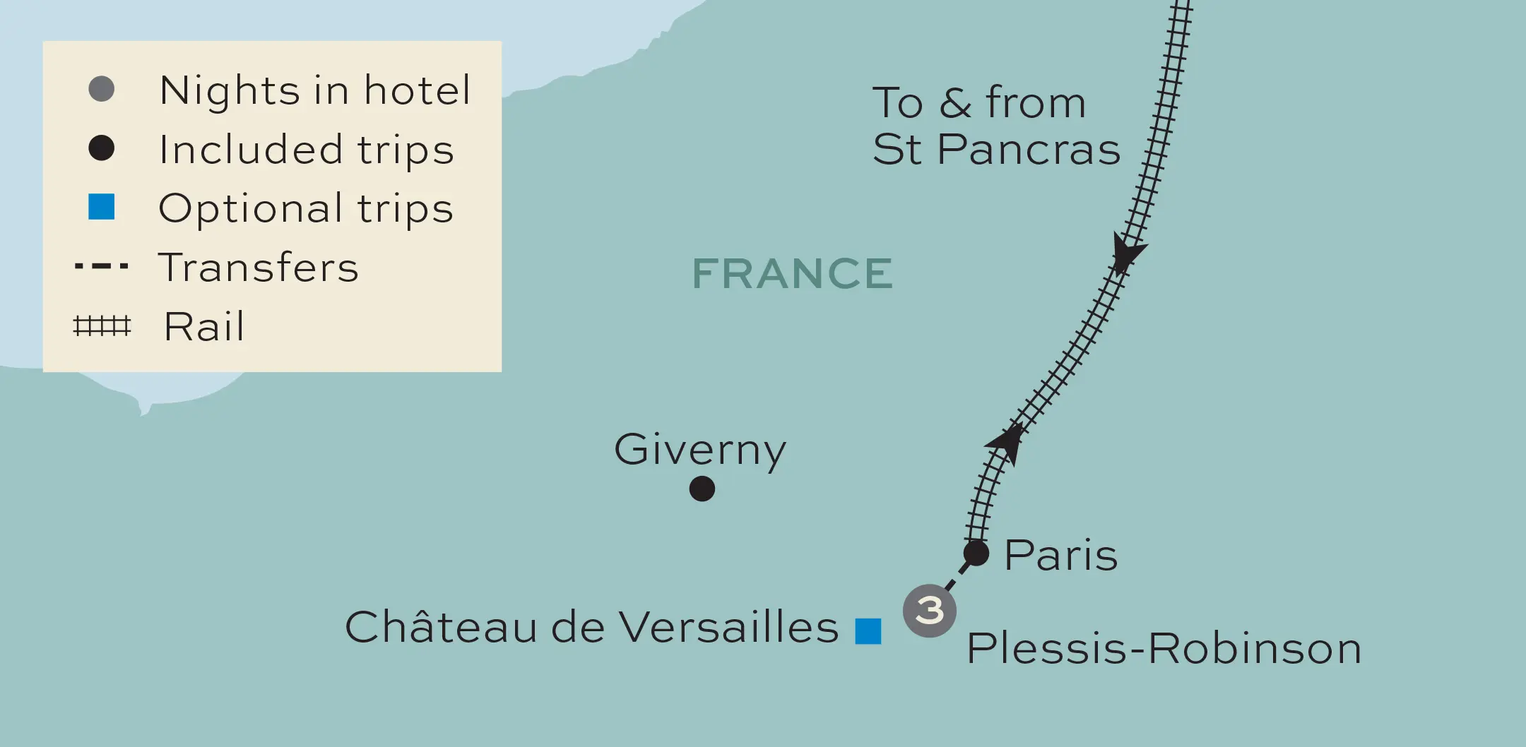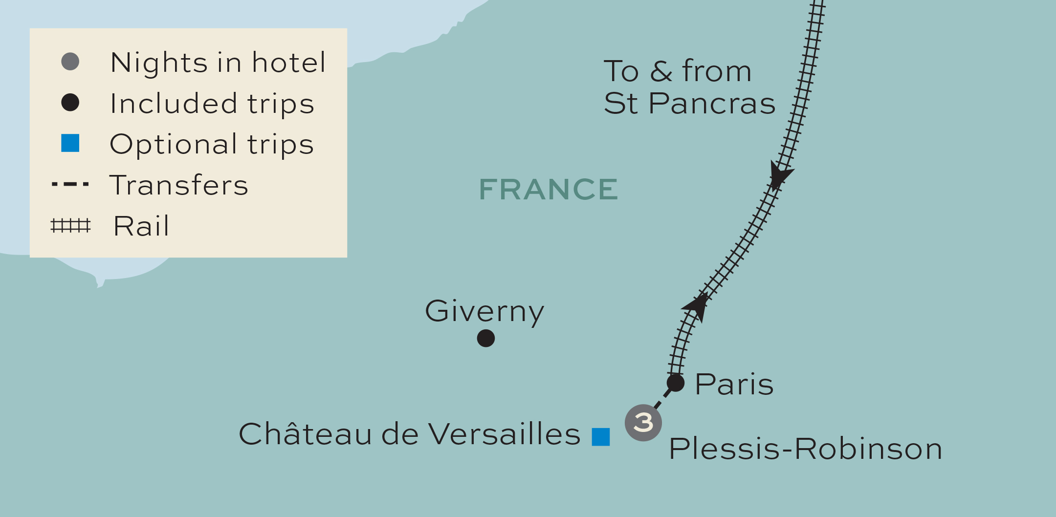 Today's optional excursion takes us to the formal gardens of the Château de Versailles. This UNESCO-listed building was once a hunting lodge, a seat of government and a symbol of the power of the French monarchy. The huge honey-coloured palace was built in the 17th century during the reign of Louis XIV, and at the same time the magnificent gardens were created by landscape artist André le Nôtre. As we explore, we'll see three large parterres, more than 200 sculptures, groves nestled among the woods, fountains and a spectacular orangery.