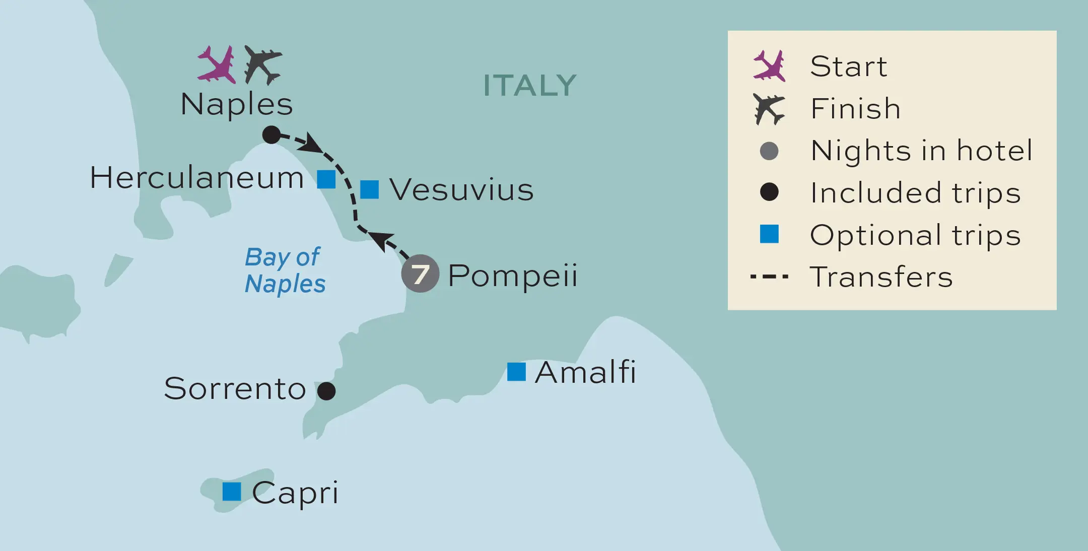 Today, you fly to Naples and transfer to your hotel in the beautiful Bay of Naples. Famous for its beauty, mild climate and fascinating history, the area's attractions range from lovely resorts and idyllic islands to world-famous archaeological sites. With its picture-perfect streets, laid-back café culture and great cuisine, where better to experience the Italian lifestyle. This evening we'll get to know one another over a welcome drink before dinner.