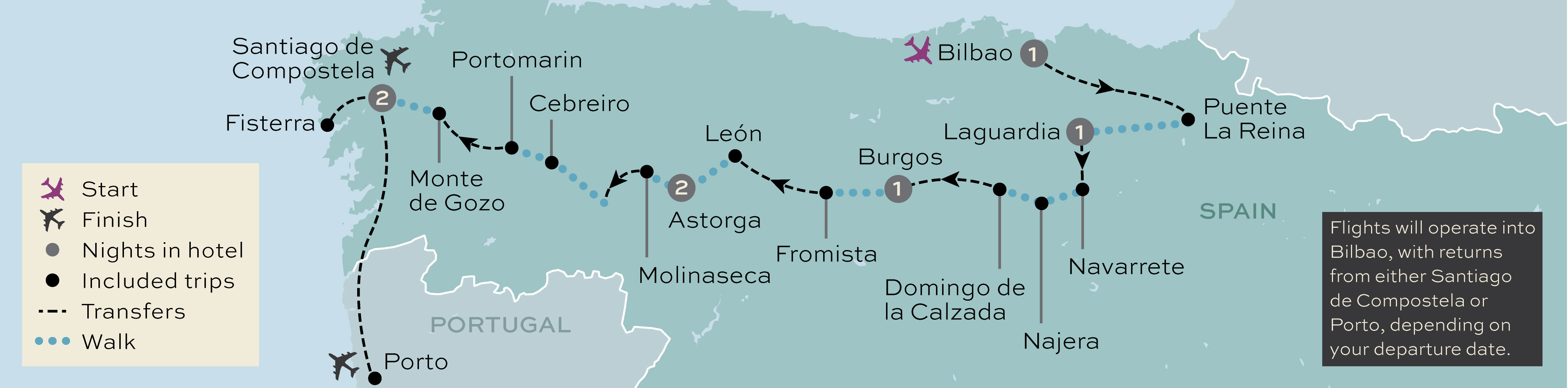 Our first stop today is at Navarrete, a town built in the 12th century by the Knights of the Holy Sepulchre, which offers wonderful views of the surrounding countryside. Then we drive to Najera and visit its stunning Santa Maria La Real monastery before starting todays walk that takes us through more vineyards of La Rioja. We'll continue by road to Santo Domingo de la Calzada, an important stopping point for pilgrims. On arrival in Burgos, where we stay tonight, you can join an optional guided tour which features some of the highlights of the old town, amongst them the magnificent Gothic cathedral.